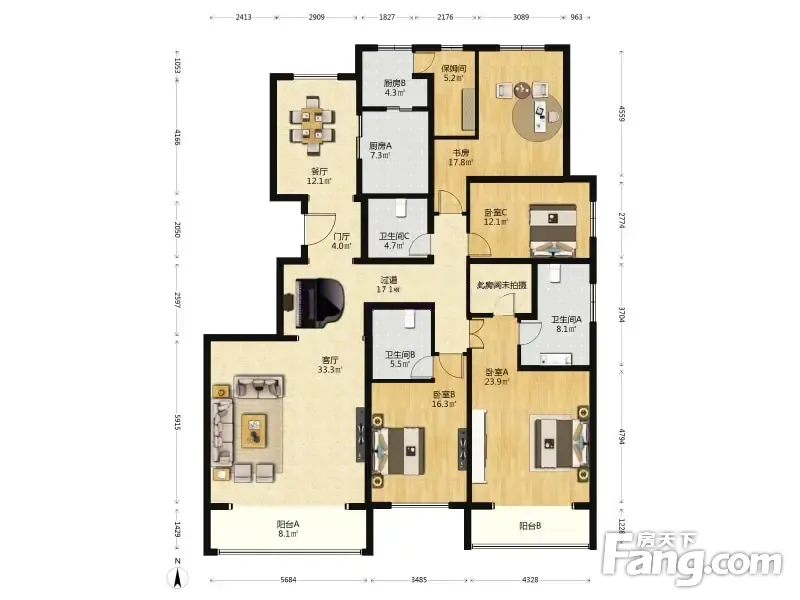 户型齐全,主打户型方正,独立衣帽间,明卫三居