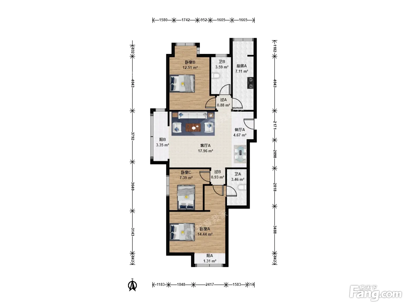 3室1厅2卫