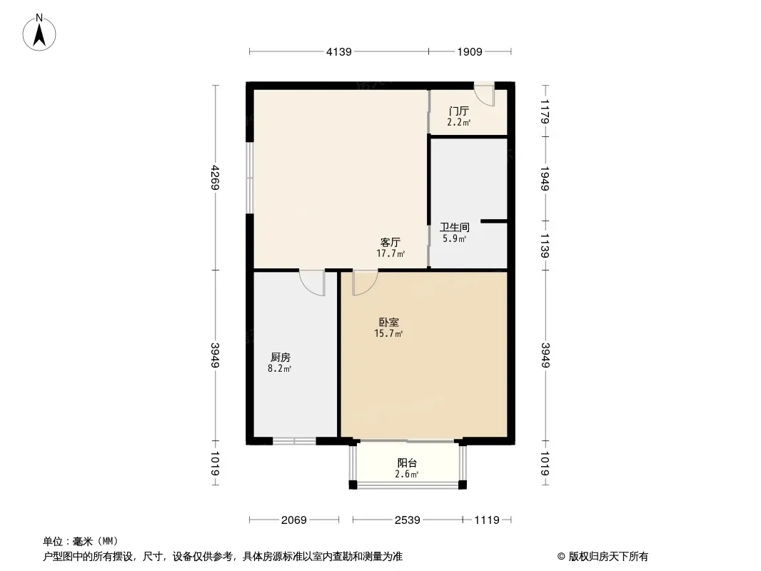 户型齐全,主打明厨,客厅朝南,双阳台,户型方正二居