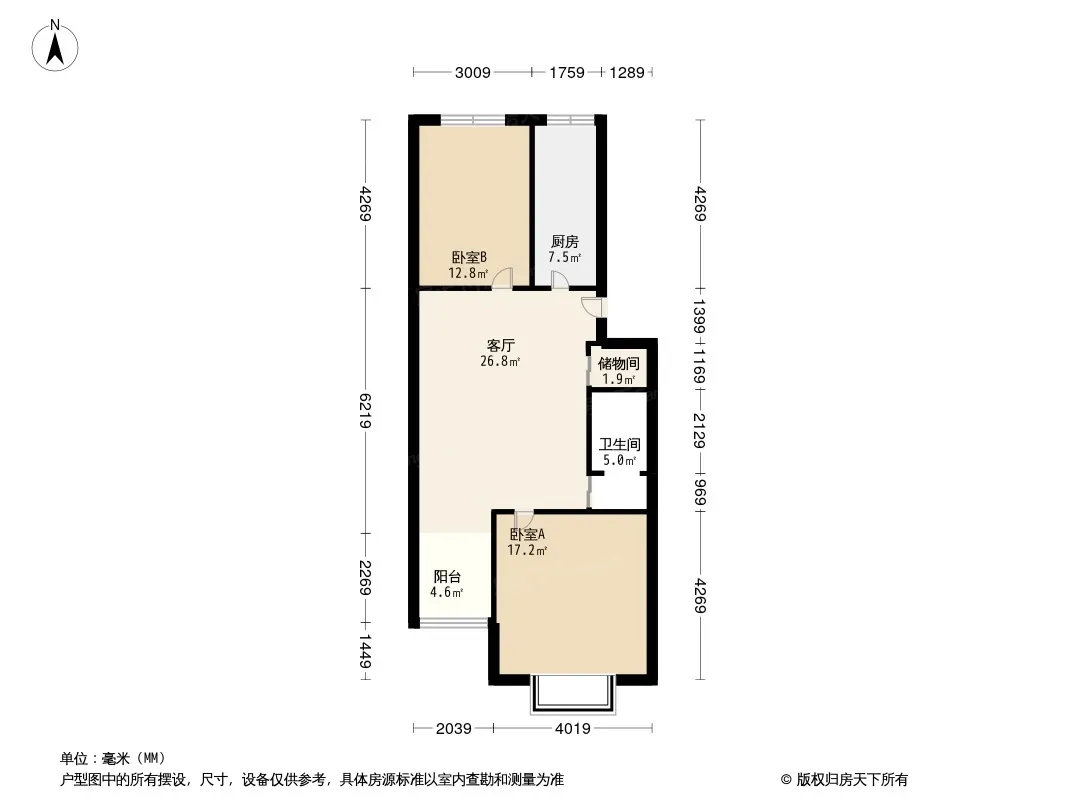 昊天嘉园 2室1厅 北 南