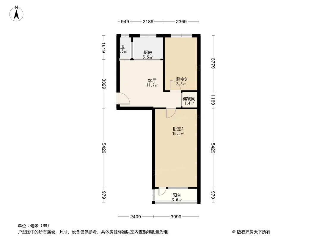 门头沟月季园 2室1厅 南 北