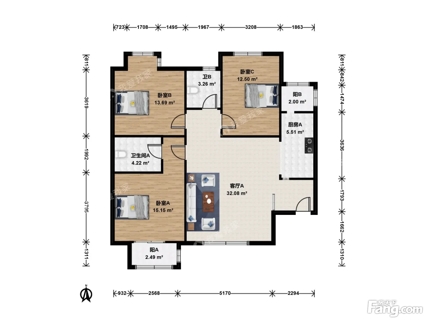 3室1厅2卫
