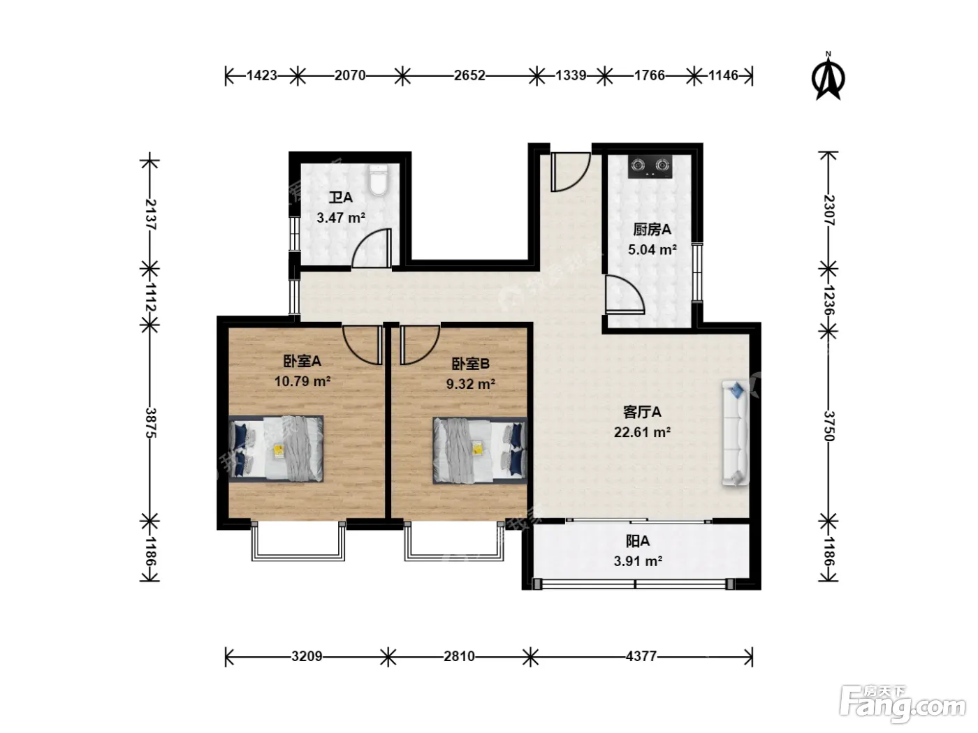 空港吉祥花园 全南两居室 全明格局 采光充足
