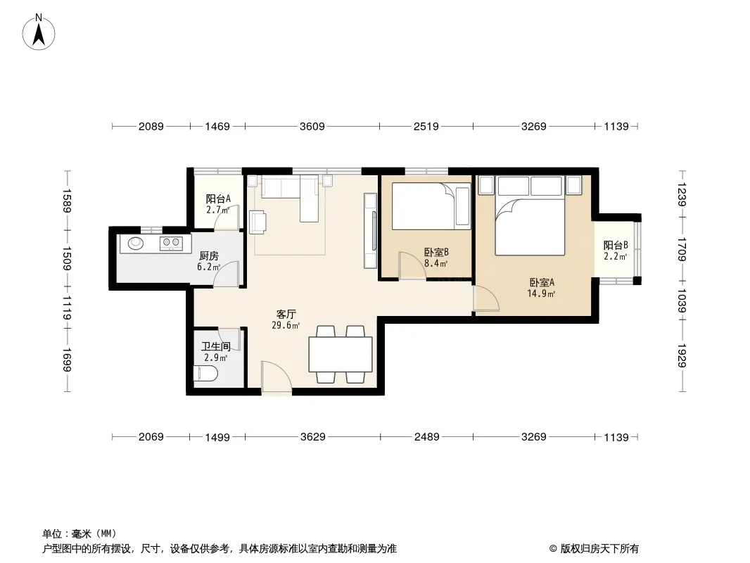 远洋一方溪语苑 2室1厅 西北