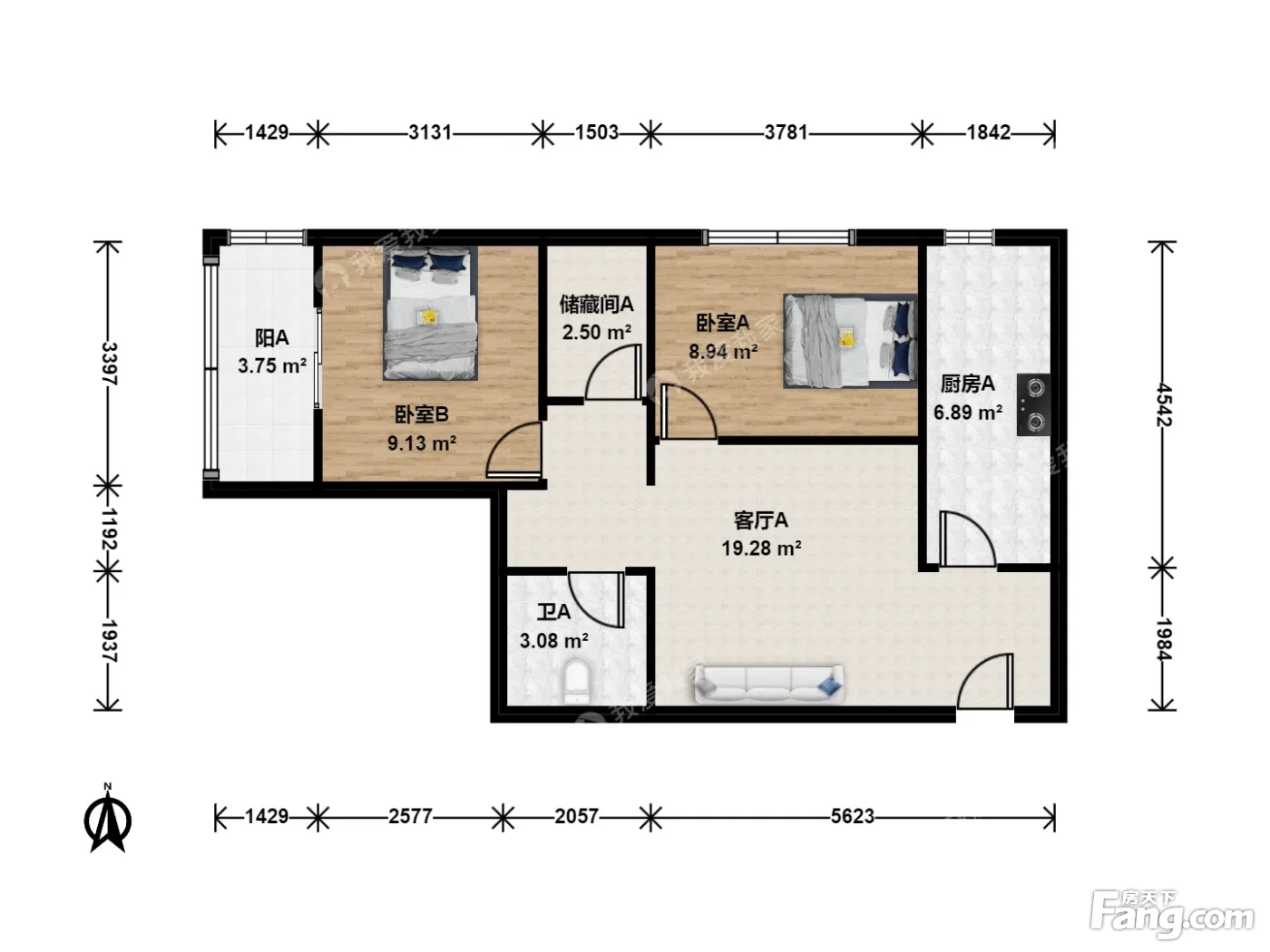 户型齐全,主打明厨,独立衣帽间,双卧朝南,主卧朝南二居