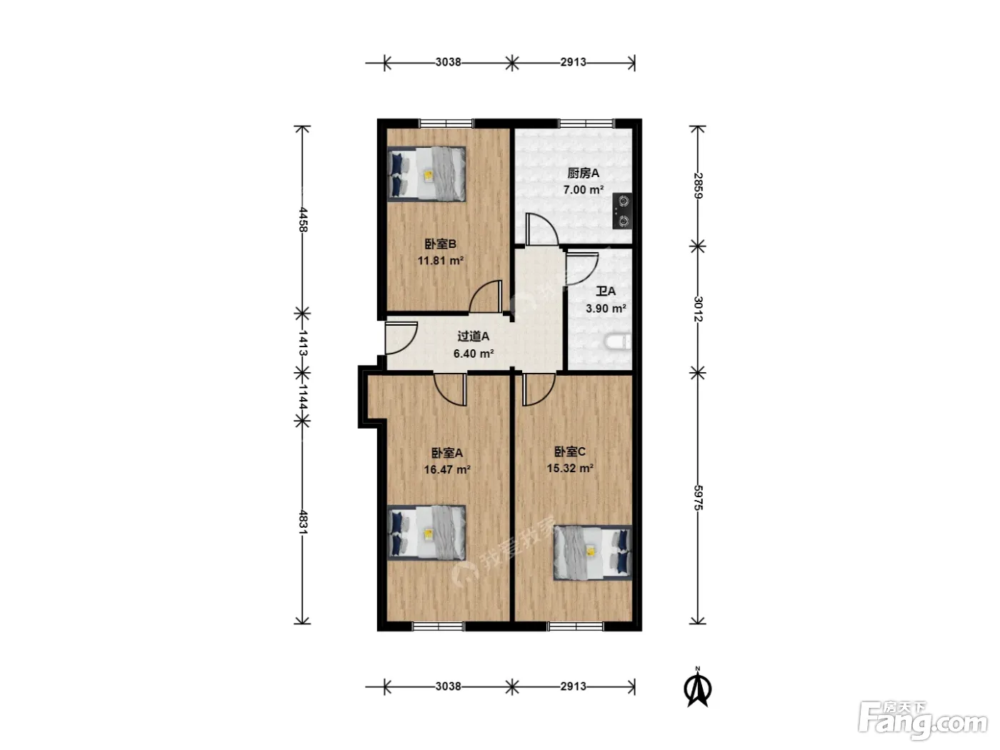 3室1卫