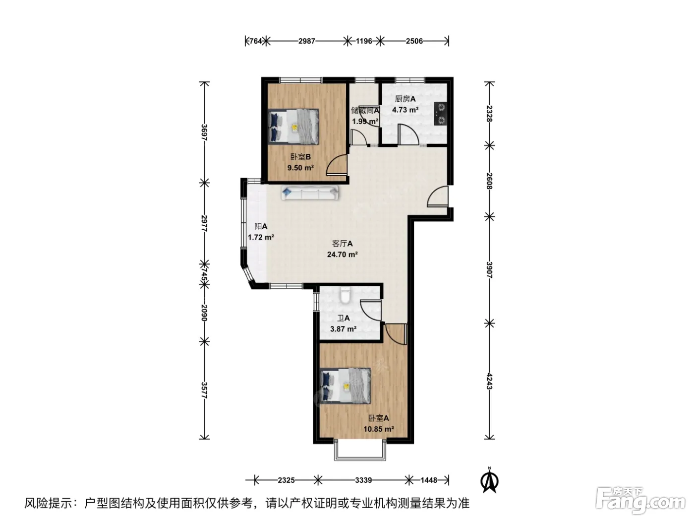 周家庄中路18号院,明厨明卫两居室,无遮挡
