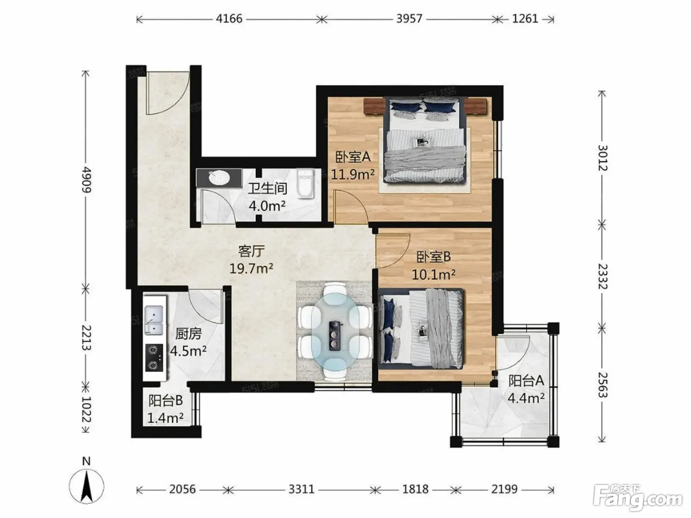 户型齐全,主打户型方正,双阳台二居