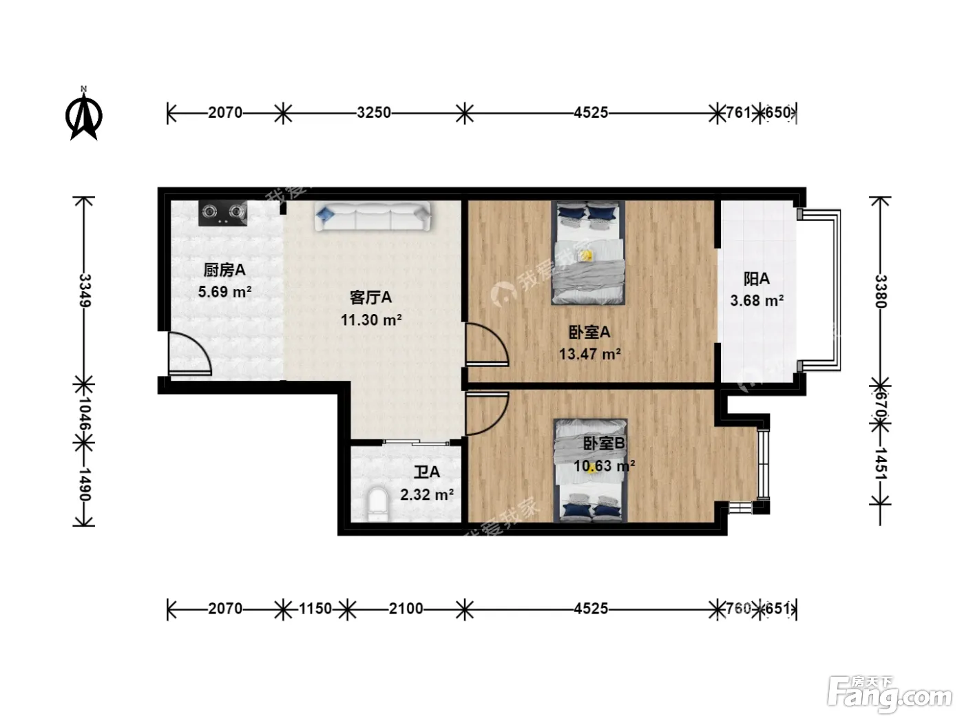户型介绍:此房为东西2室1厅1厨1卫1阳,建筑面积为63.5平米,东西通透、无遮挡、户型方正,房子厨房墙面不承重,方便改造。