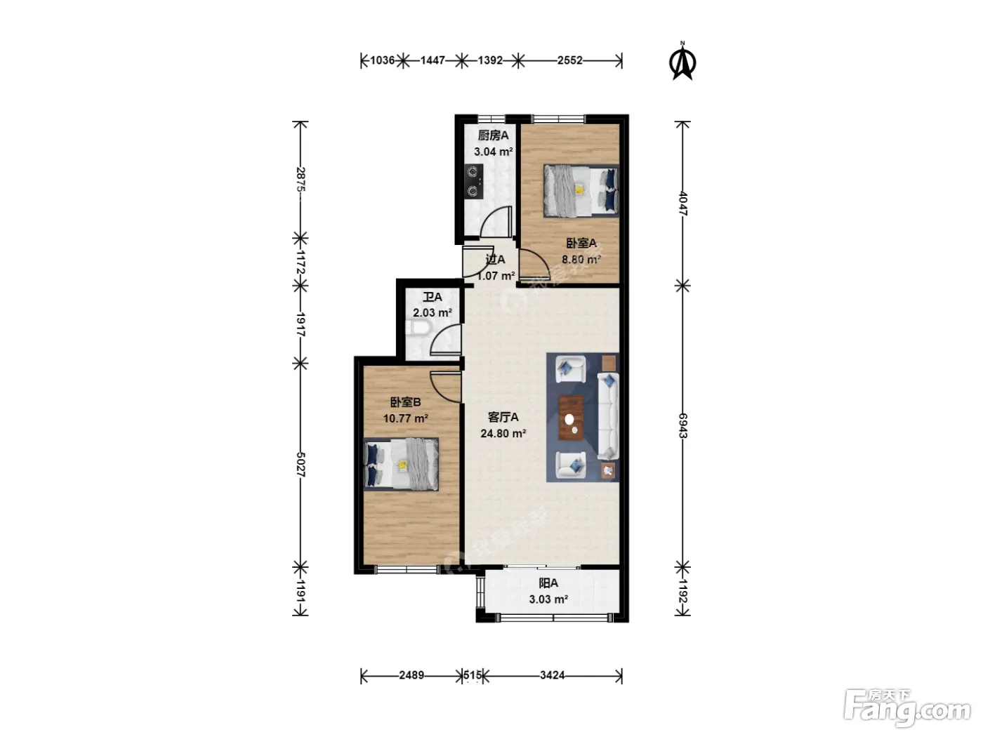 户型介绍:此房为南北通透2室1厅1厨1卫1阳台,建筑面积72.02平米
