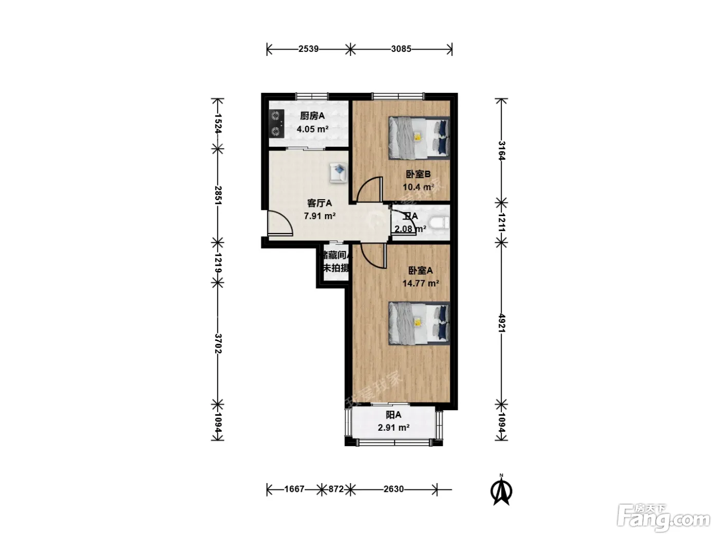 户型齐全,主打户型方正,明厨,客厅朝南,双卧朝南二居