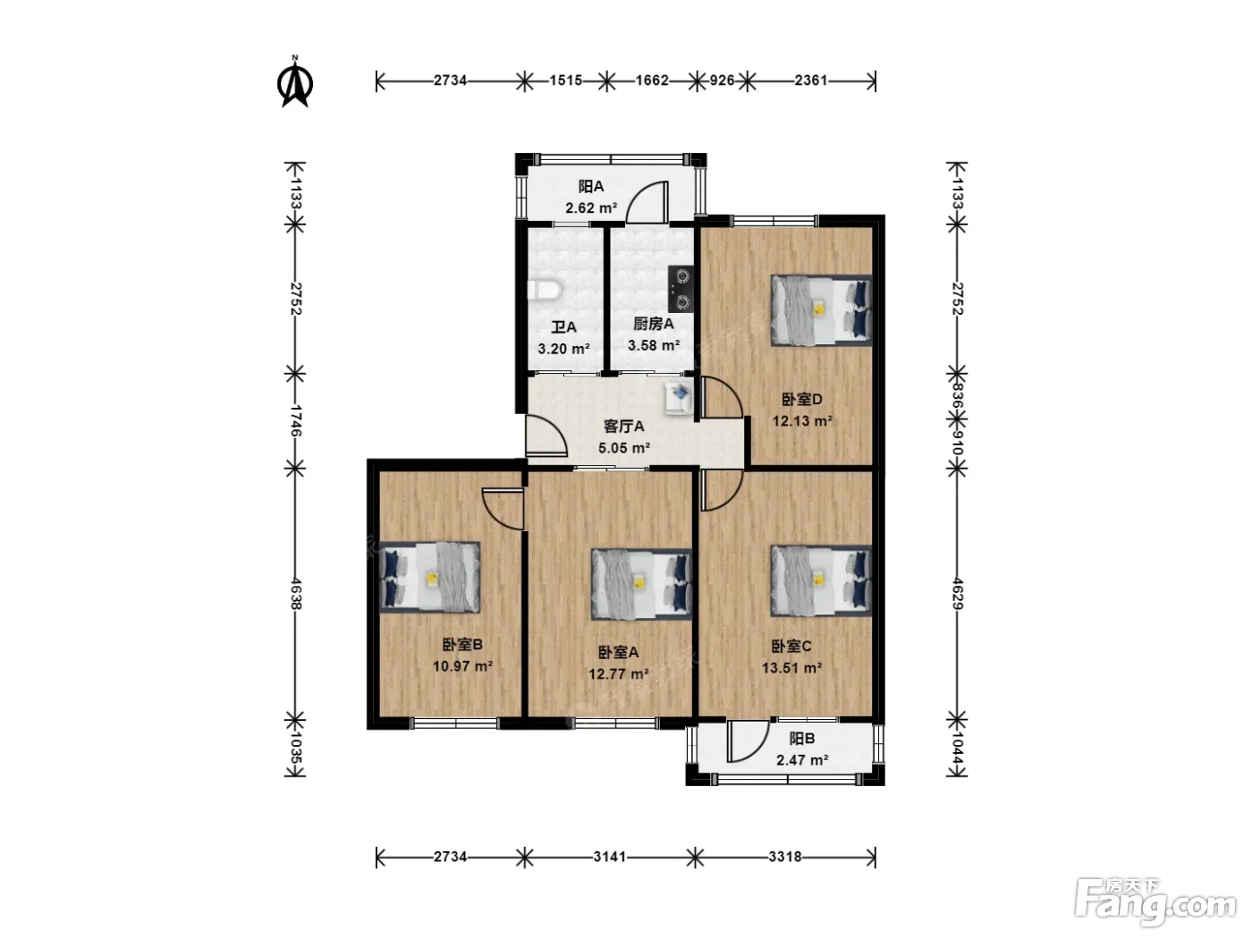 户型介绍:此房户型为4室1厅1卫,3个卧室朝南一个卧室朝北,厨房卫生间都带窗户, 周边少有的大户型且公摊小。