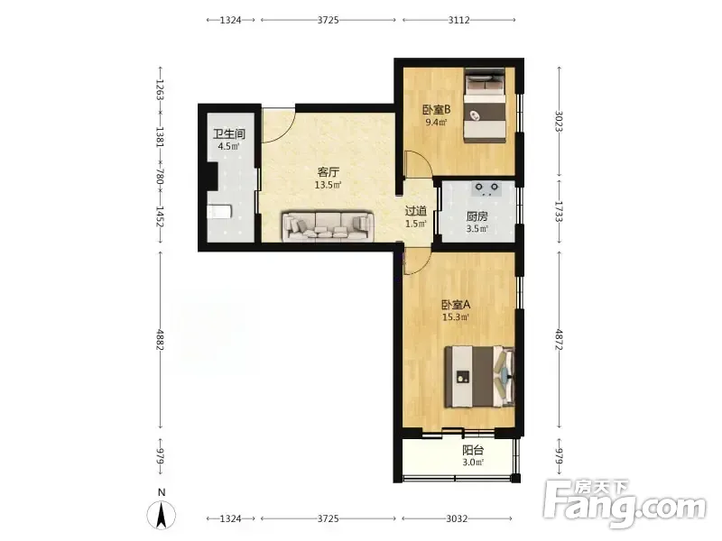 户型齐全,主打明厨,客厅朝南二居