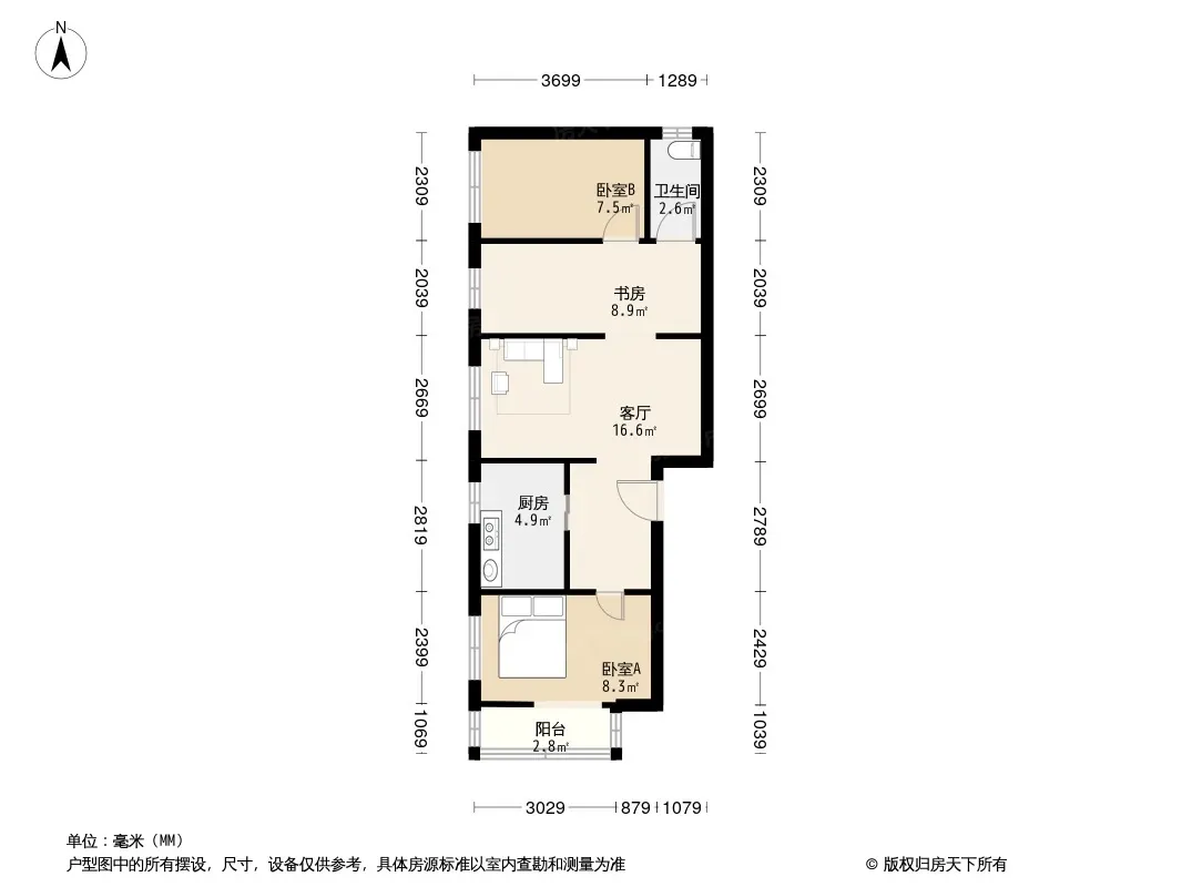 户型齐全,主打客厅朝南二居