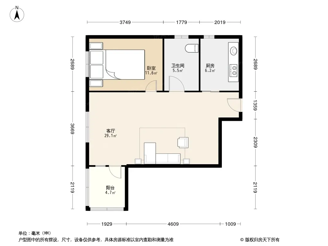 户型齐全,主打户型方正,明厨,明卫,客厅朝南一居