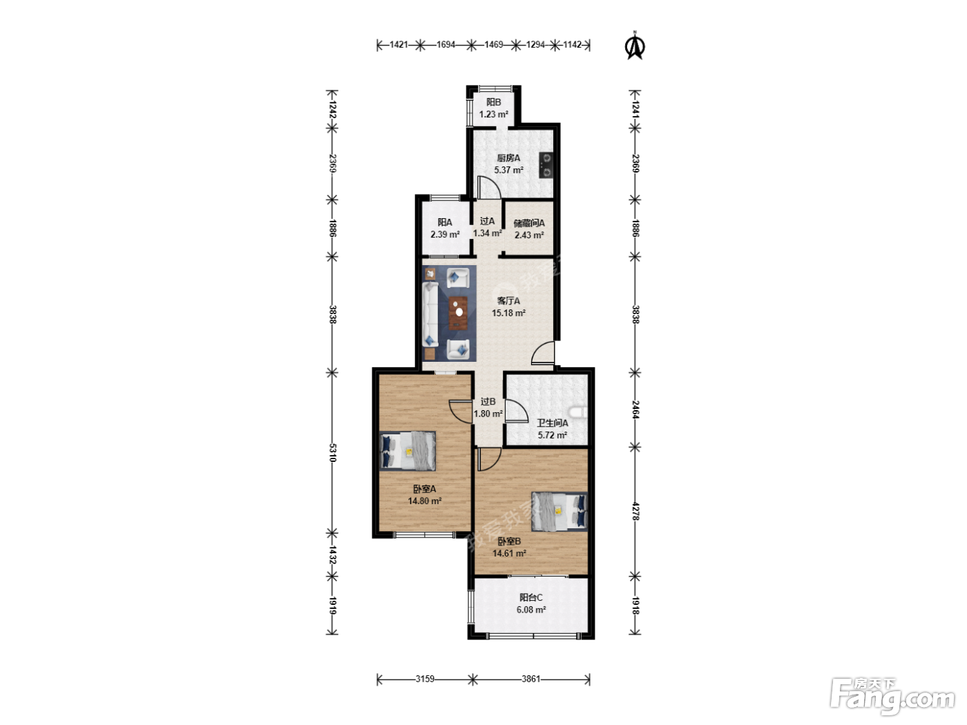 户型介绍:房子户型方方正正没有浪费面积,两个卧室朝南主卧室带阳台。本房还有一个15平米地下储物间。