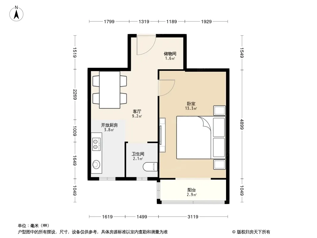 户型齐全,主打明厨,客厅朝南一居