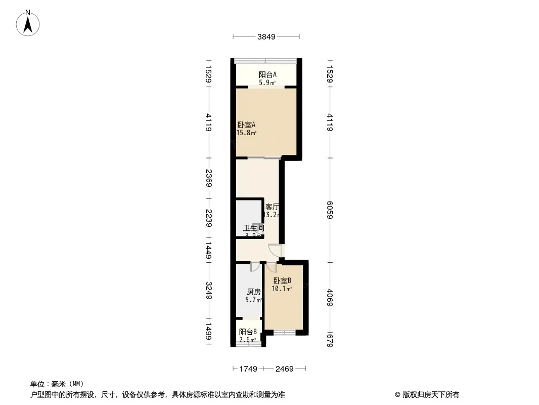 户型齐全,主打客厅朝南,双阳台二居