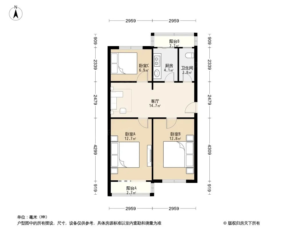 户型齐全,主打户型方正,客厅朝南,双阳台,主卧朝南二居