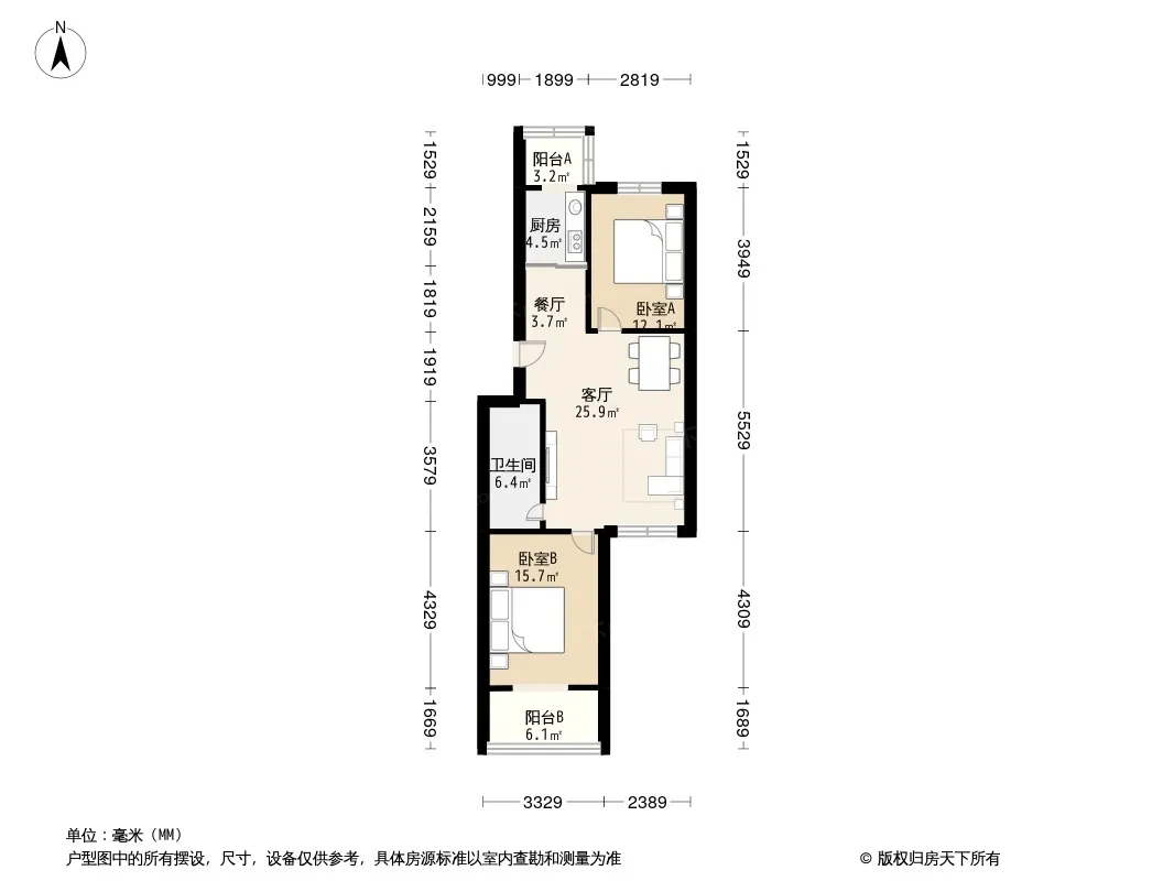 户型齐全,主打户型方正,客厅朝南,双阳台二居