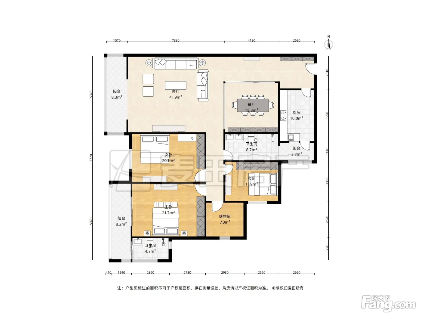 、141平-141平的客厅朝南,双阳台的二居
