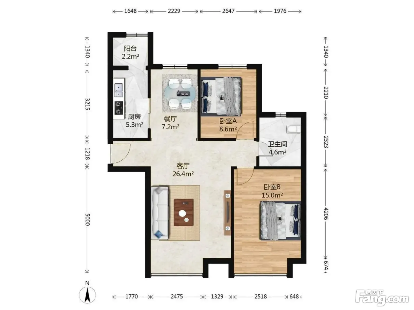 户型齐全,主打客厅朝南二居