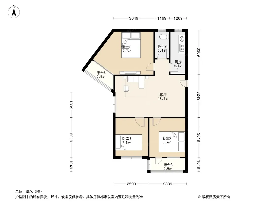 *获取完整户型报告,同时会有免费语音讲解服务