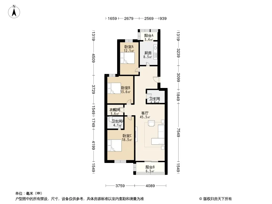 龙跃苑三区 3室1厅 南 北