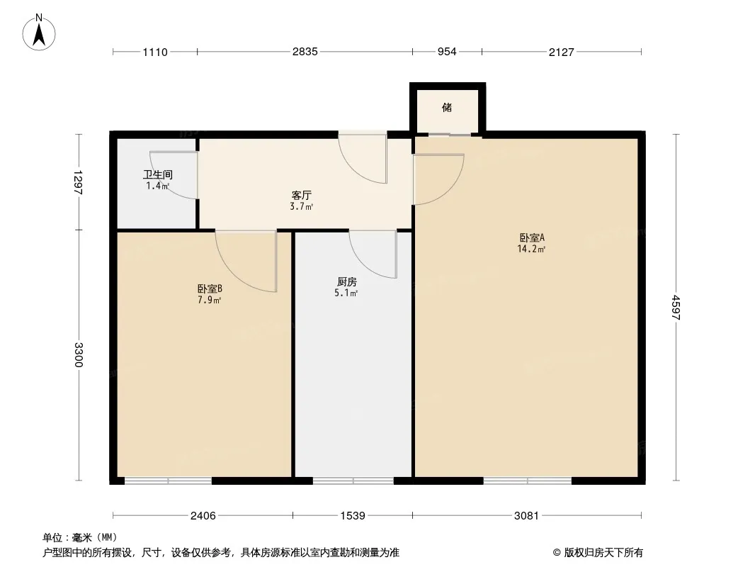 户型齐全,主打户型方正,明厨,主卧朝南二居