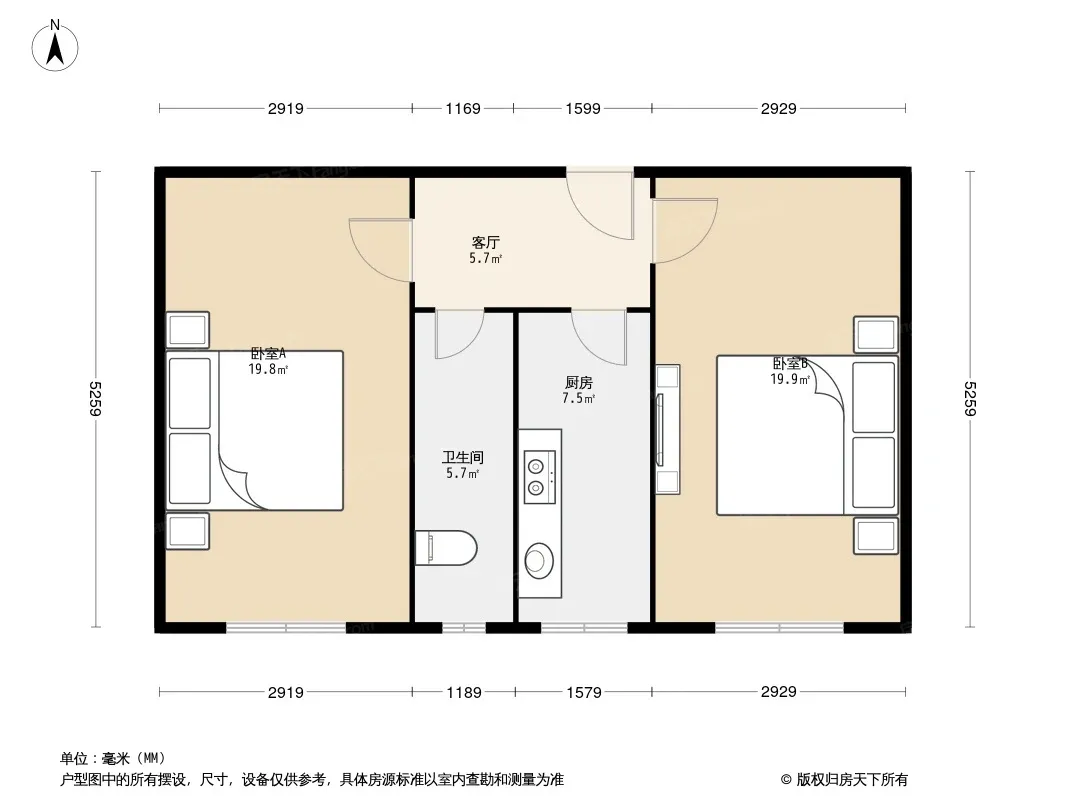 户型齐全,主打户型方正,明厨,明卫,客厅朝南,全明格局,主卧朝南二居