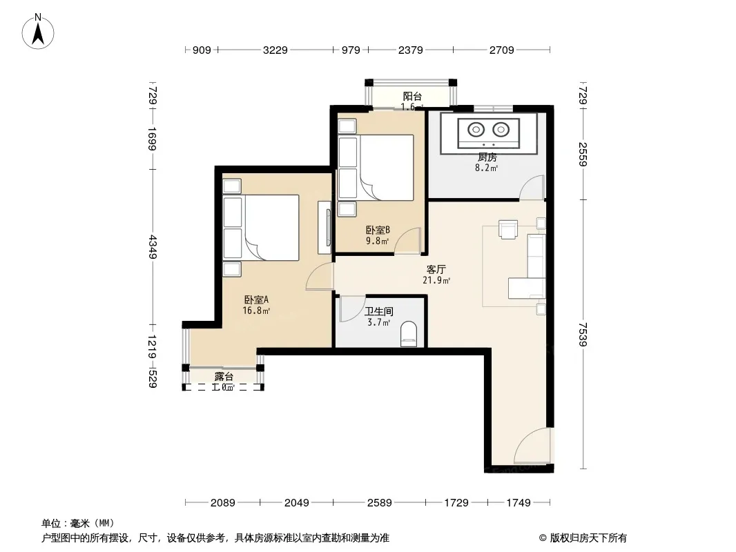 户型齐全,主打户型方正,明厨,主卧朝南二居