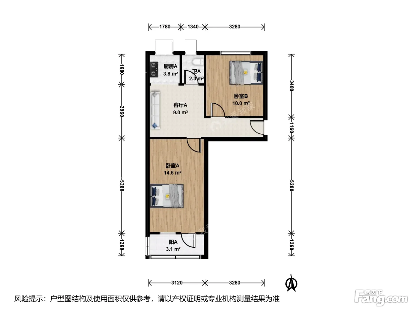 户型介绍:此房户型为2室1厅1卫,建筑面积为59平米。主卧朝南正对院内花园。厨房+卫生间朝北-有对外窗户,12平左右客厅(可放下餐桌,冰箱等)