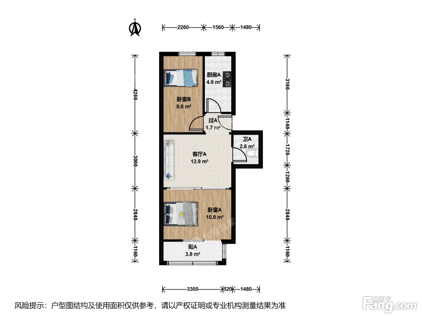 户型介绍:此房户型为2室1厅1卫,建筑面积为54.31平米,朝向为南北。