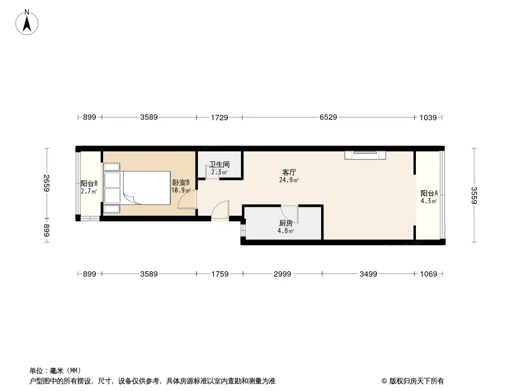 户型齐全,主打客厅朝南二居