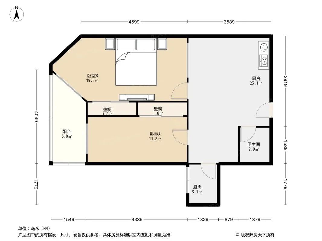 户型齐全,主打明厨,双卧朝南,主卧朝南二居