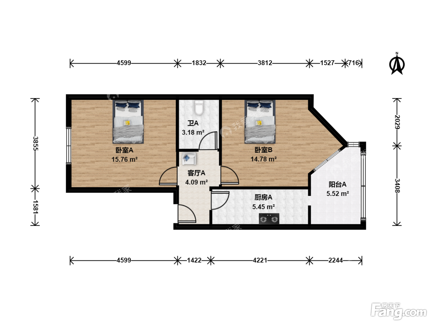 户型齐全,主打户型方正,明厨,双阳台,主卧朝南二居
