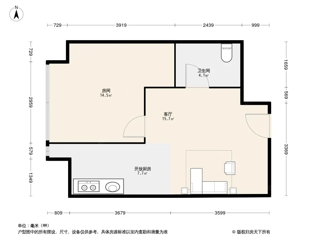 户型齐全,主打客厅朝南一居