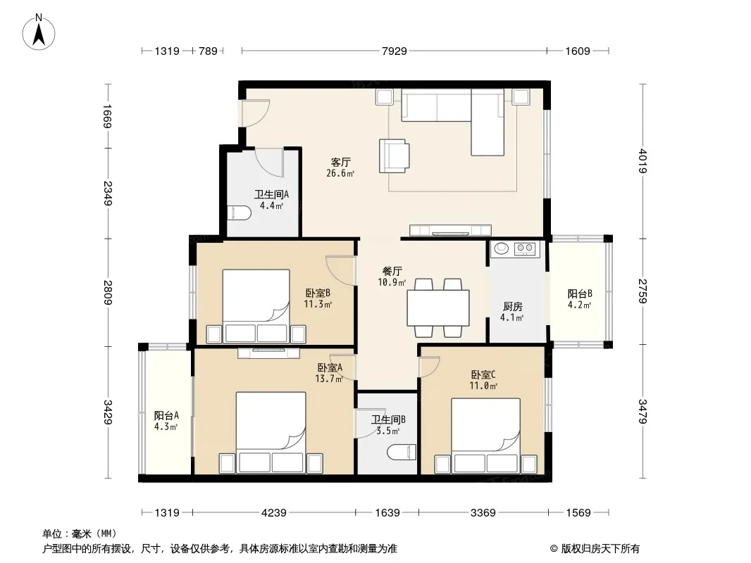 *获取完整户型报告,同时会有免费语音讲解服务