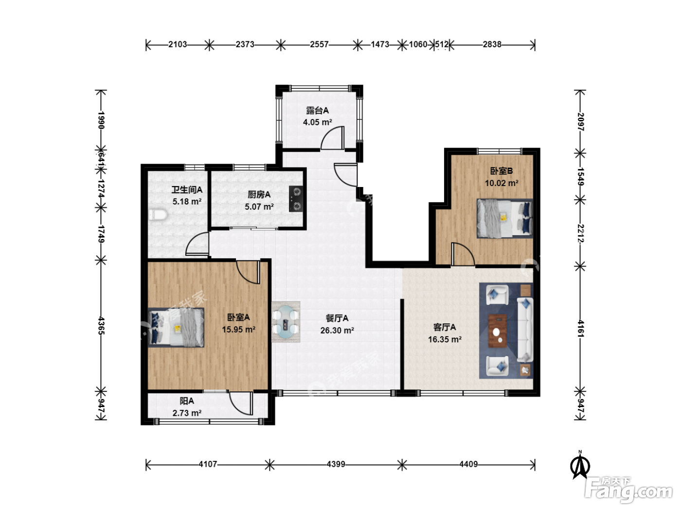 户型齐全,主打双阳台,主卧朝南三居