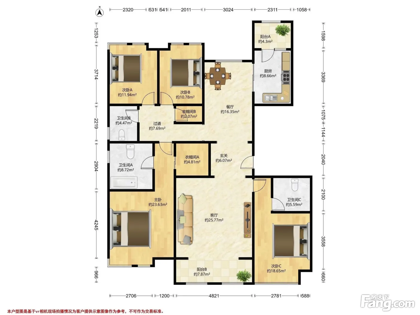 户型齐全,主打户型方正,明卫,独立衣帽间,双阳台,双卧朝南,主卧朝南四居