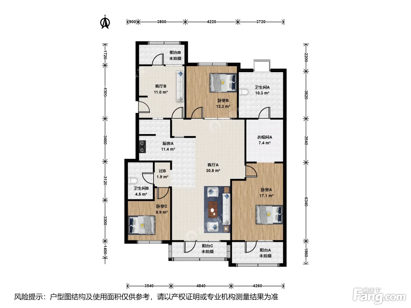 户型齐全,主打户型方正,明卫,独立衣帽间四居