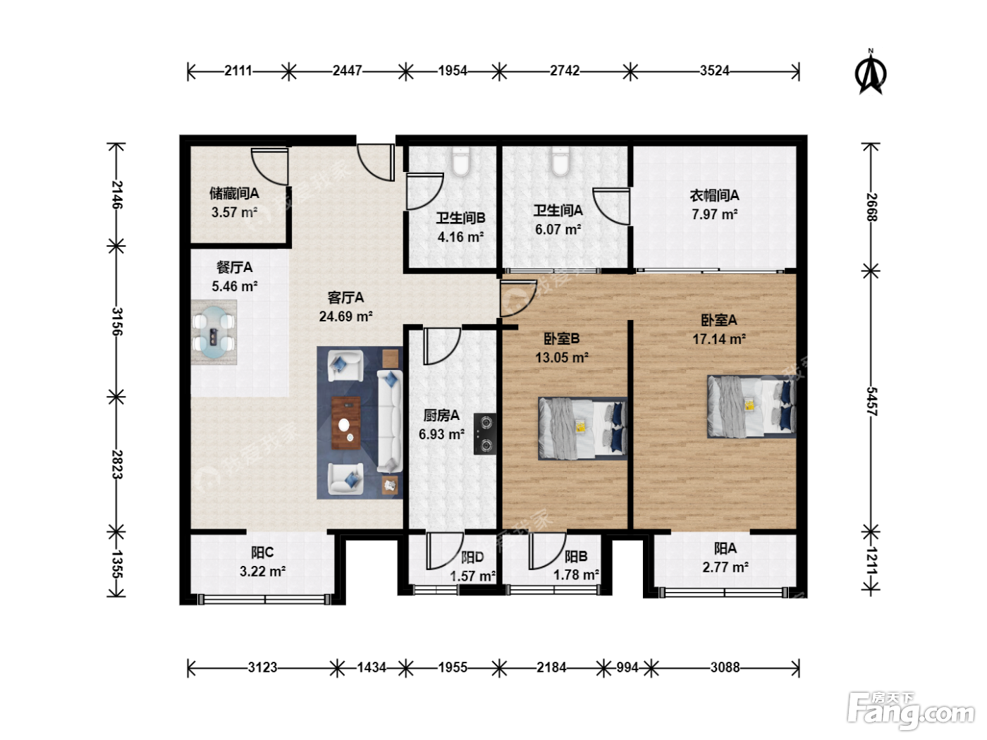 2室1厅2卫
