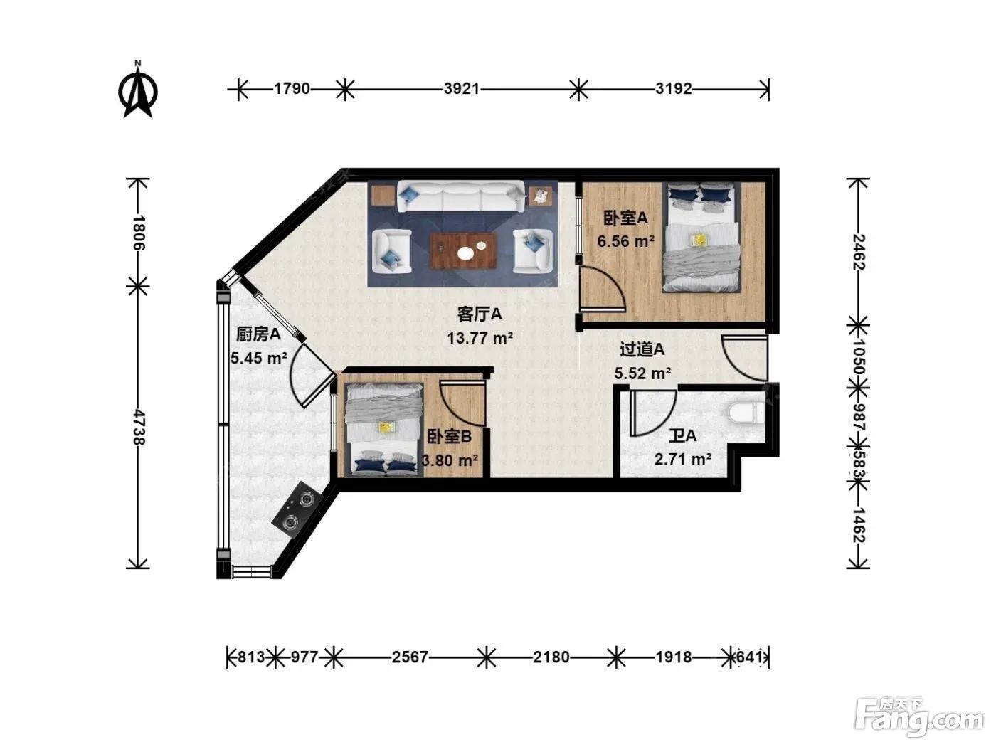 户型齐全,主打明厨,双阳台,主卧朝南二居