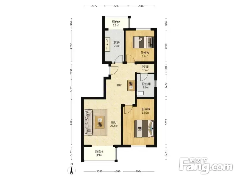 户型齐全,主打南北通透,干湿分离三居