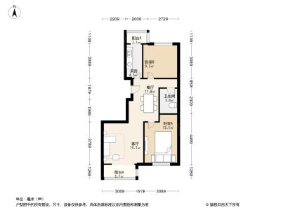 北京风景68号院 2室1厅 北 南