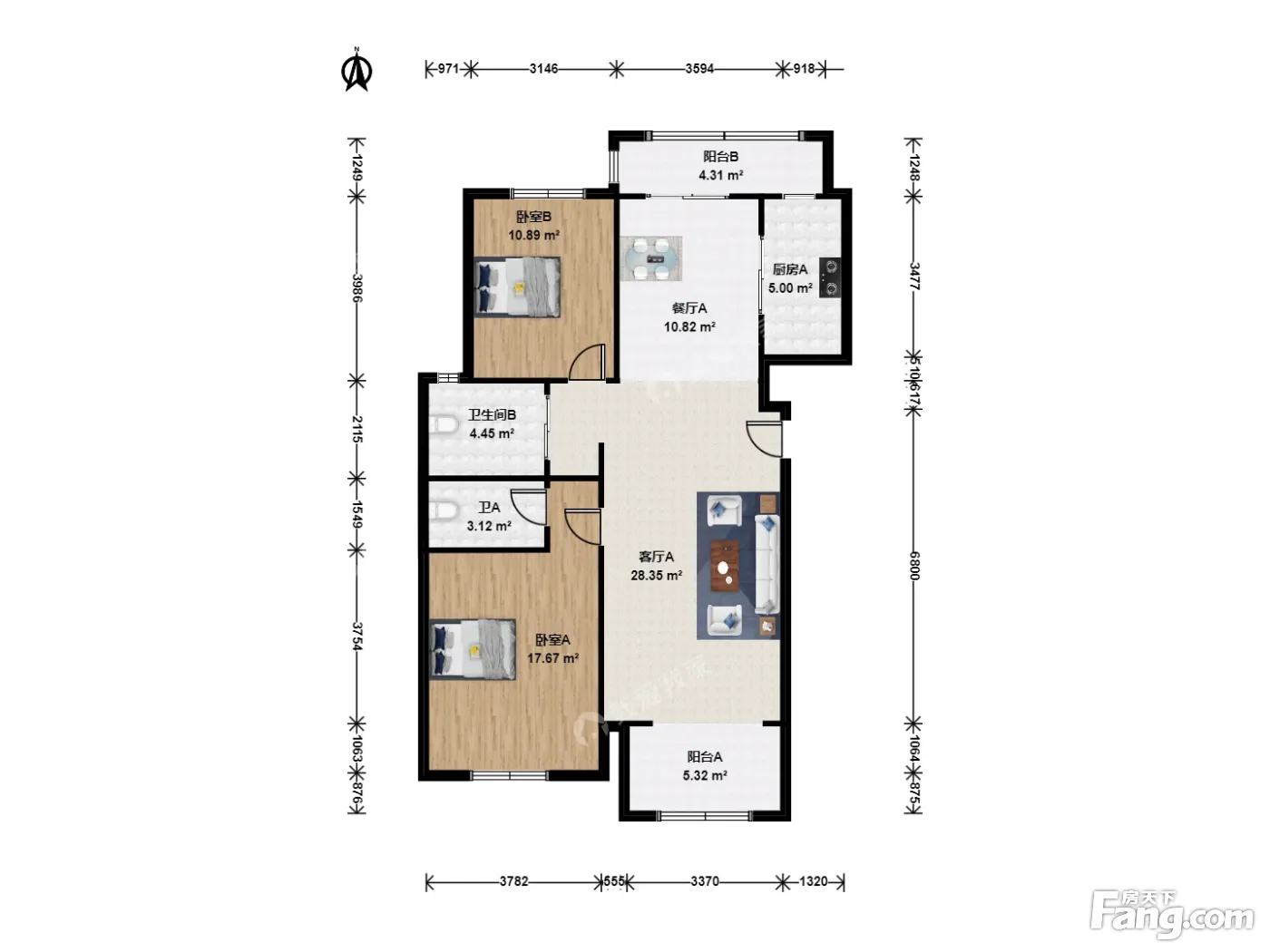 户型齐全,主打户型方正,双阳台二居