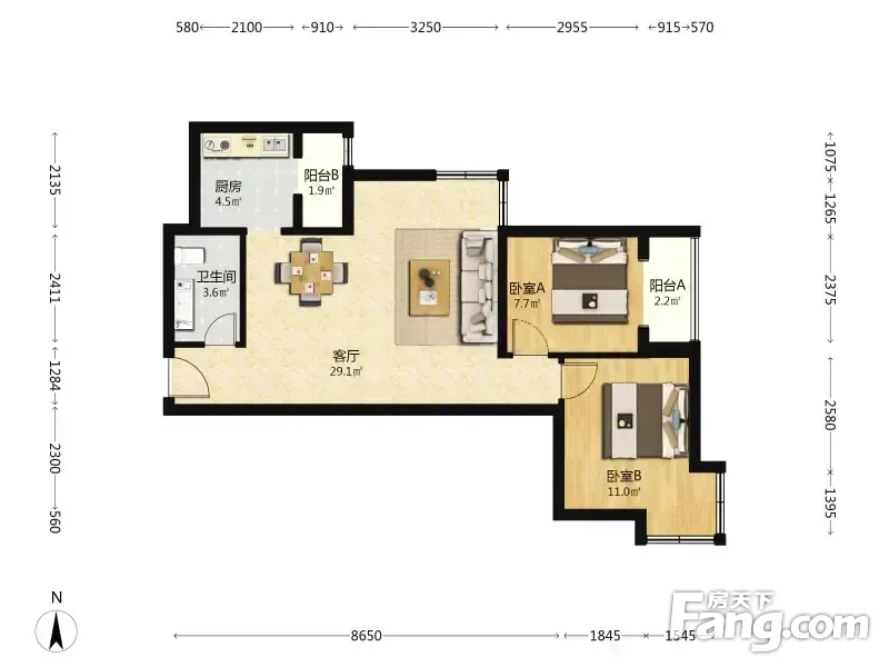 户型齐全,主打明卫,客厅朝南,双阳台二居