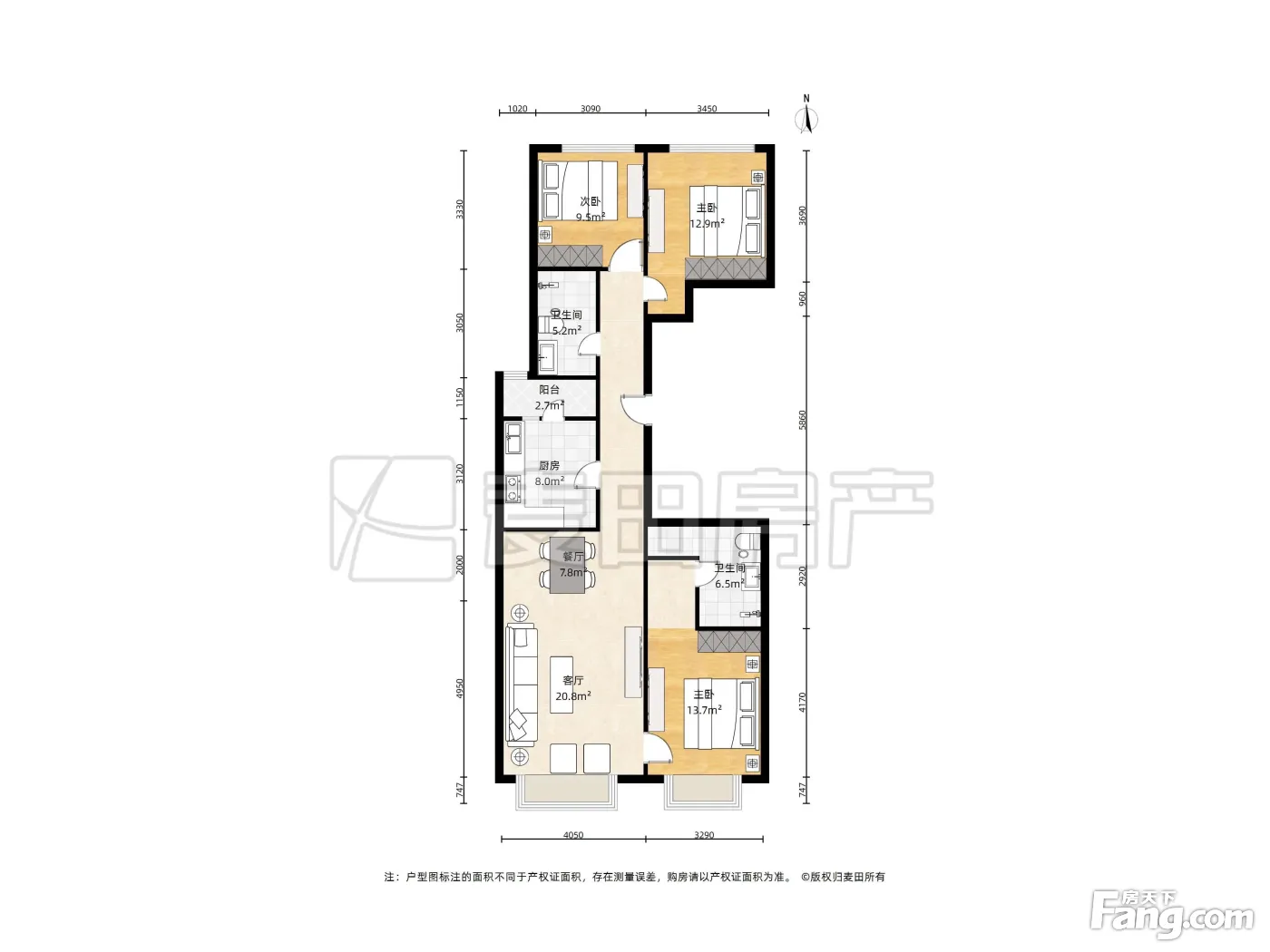 户型齐全,主打明卫,客厅朝南,主卧朝南三居