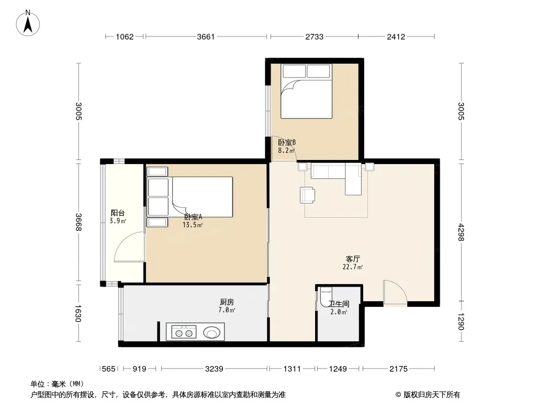 户型齐全,主打户型方正,明厨,主卧朝南二居