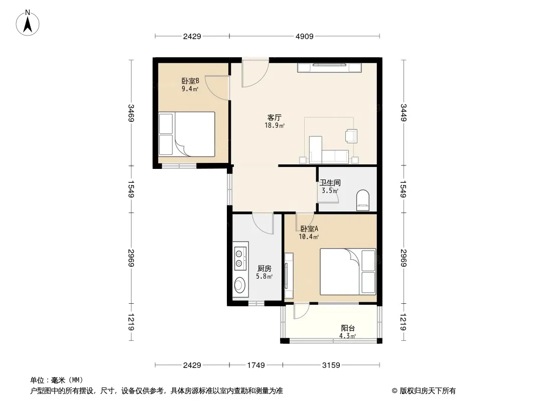 户型齐全,主打明厨,客厅朝南二居